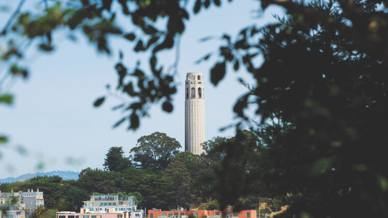 テレグラフ・ヒルの丘の上に立つCoit Tower。サンフランシスコの町を一望する1933年建設のタワーの歴史と当時の社会を映すフラスコ画など見どころを紹介します。