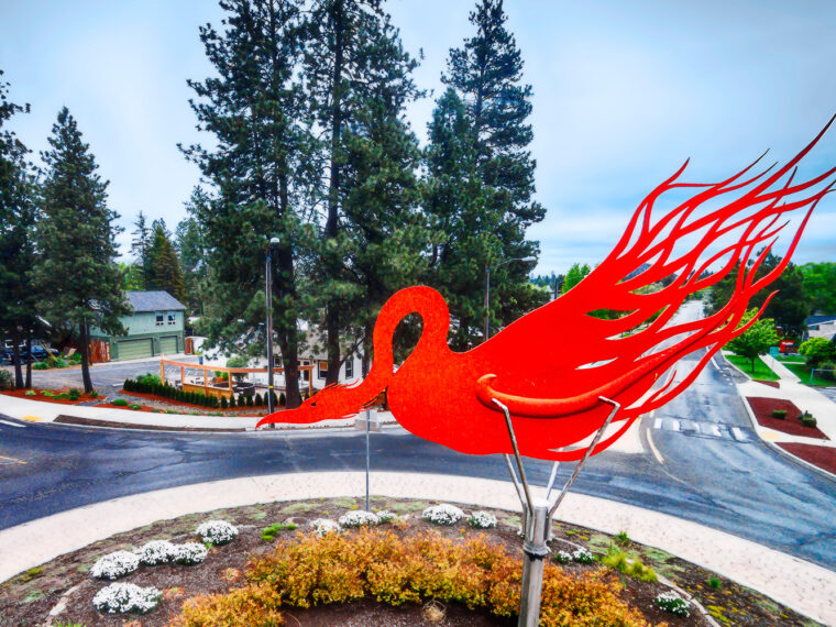 素晴らしい自然に恵まれ、年間を通じてさまざまなアウトドアが楽しめるセントラルオレゴンの人気の都市、ベンド(Bend)。そんなベンドでの滞在をより楽しいものにしてくれるのが、町の至るところで目にする“パブリックアート”です。数あるアート作品のなかでも、ラウンドアバウト(環状交差点)の中央に個性豊かな様々な彫刻作品が現れるラウンドアバウト・アート・ルート(Roundabout Art Route)は、この地をロードトリップで訪れたひととだけが存分に楽しめる特別なアート群です。