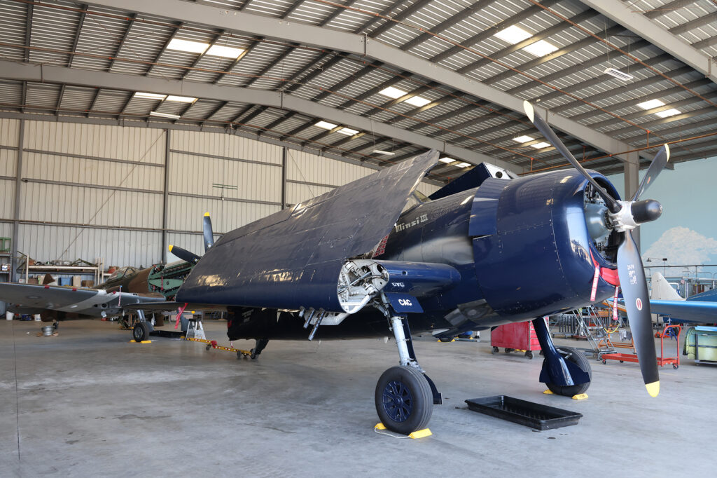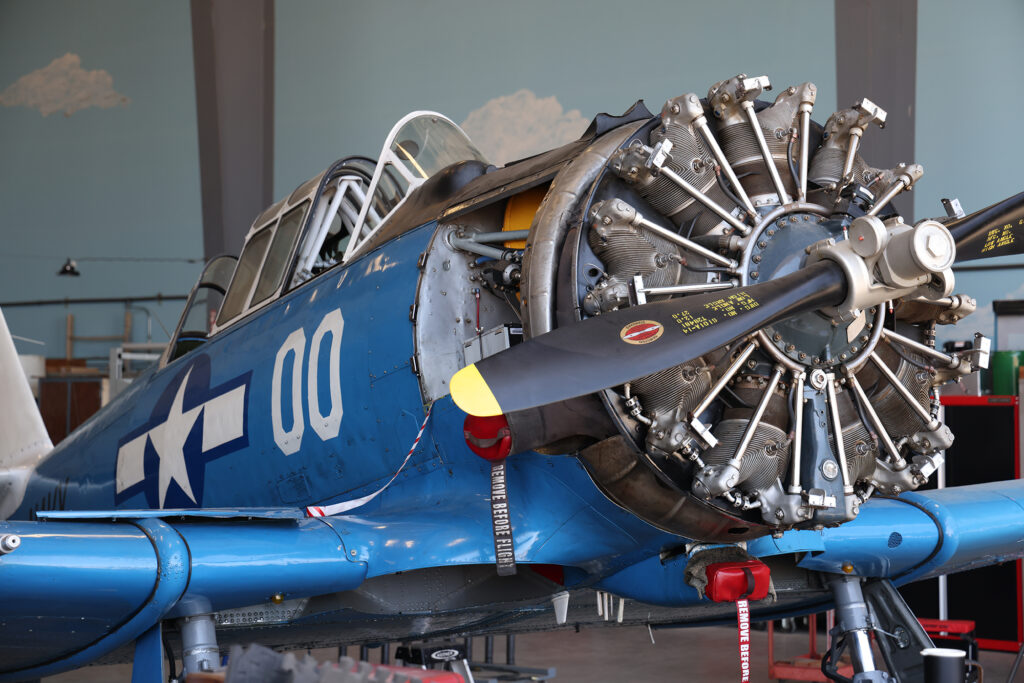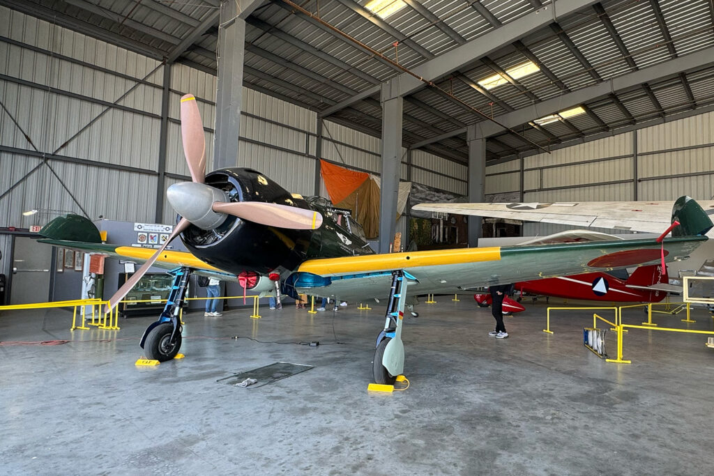ハンガーではボランティアによって丁寧に整備される機体の姿を目にすることができます。第二次大戦航空博物館(World War II Aviation Museum)としても知られるCAF SoCalには、第二次世界大戦時代の航空機が14機保有されています。ただし一般公開されているのは格納庫内に展示されている機体が中心で、一部は修復作業のため非公開です。展示されている機体には、アメリカ海兵隊仕様のPBJミッチェル(B-25の派生型)をはじめ、F8Fベアキャット、F6Fヘルキャット、そして三菱A6M3ゼロ(零戦)など、歴史的価値の高いモデルが並びます。保有されている機体のうち11機は飛行可能な状態で保存されており、プロペラの回る音やエンジンの振動、機体の存在感から、当時の航空技術の息づかいをリアルに感じ取ることができます。