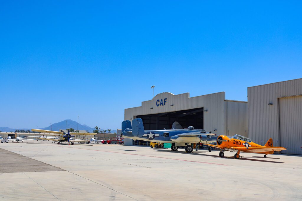 CAF は1957年に設立された団体で、アメリカ軍で使用されてきた航空機の保存に尽力し、当時の機体や技術、文化を後世に伝えることを目的としています。現在では全米に支部があり、1981年に設立されたCAF SoCalはその中でも規模の大きいユニットのひとつです。南カリフォルニアは航空産業が発展した地域で、ロッキードやノースロップなど多くの航空メーカーが集まった歴史を持ちます。CAF SoCalは、そうした地域の航空文化と結びつきながら、第二次世界大戦期の航空機の保存・修復活動を続けています。