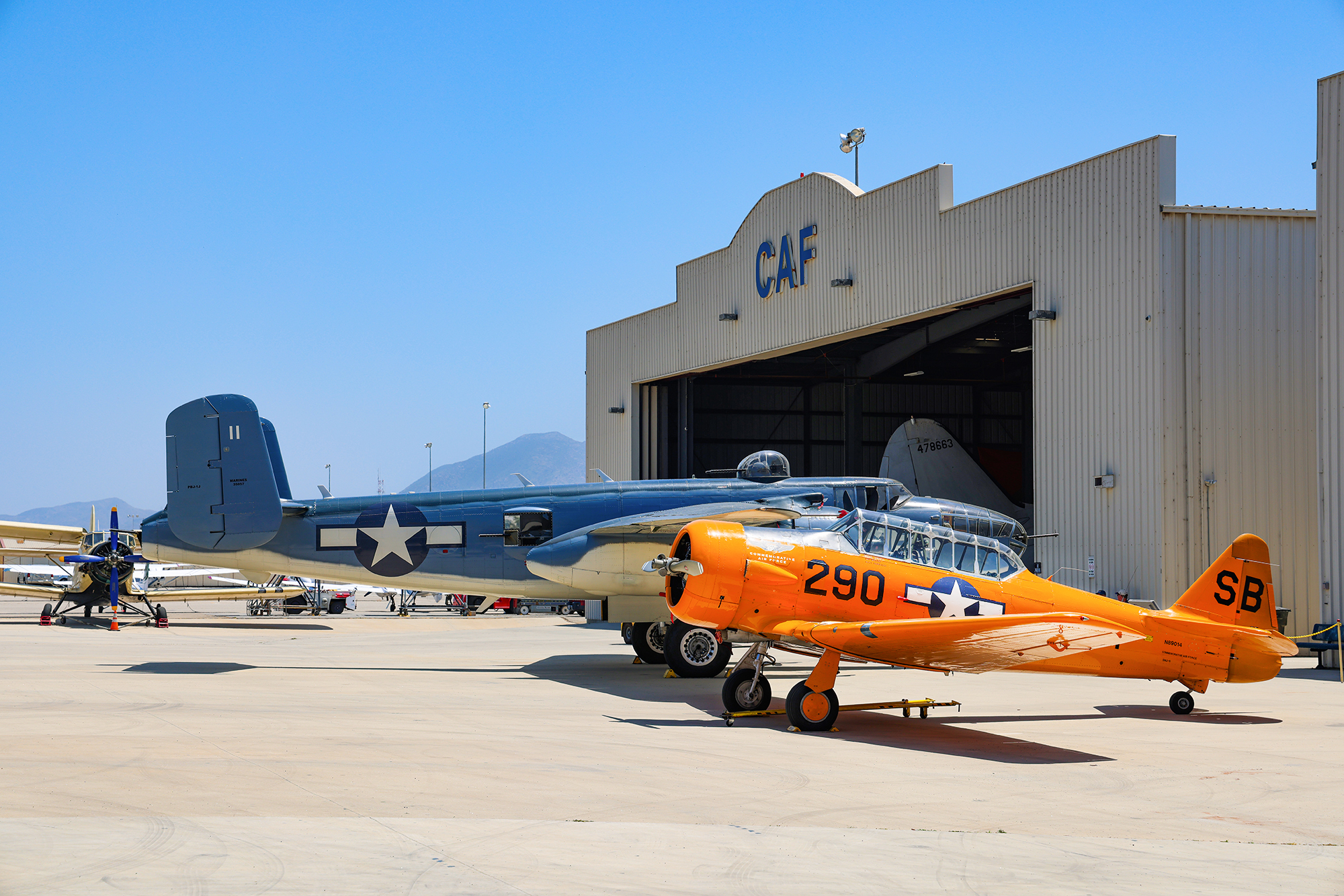 カマリロ空港の一角にあるCAF SoCalの第二次大戦航空博物館。格納庫での整備風景や飛行可能な戦闘機が見られるフライトイベントが魅力です。