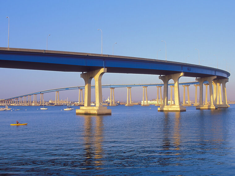 設計を担当したのは、ロバート・モッシャーとジム・フィッシャーを中心とするエンジニアチーム。橋は全長2.12マイル(約3.4km)、中央部の高さは200フィート(約61m)に達し、湾内を通る空母や大型艦船の航行を妨げない設計になっています。サンディエゴ湾を象徴する優雅なカーブは、構造的な安定性と美観の両立を意図したもので、そのデザイン性から1970年にはアメリカ鉄鋼構造協会(AISC)によって「最も美しい橋(Most Beautiful Bridge)」に選ばれました。