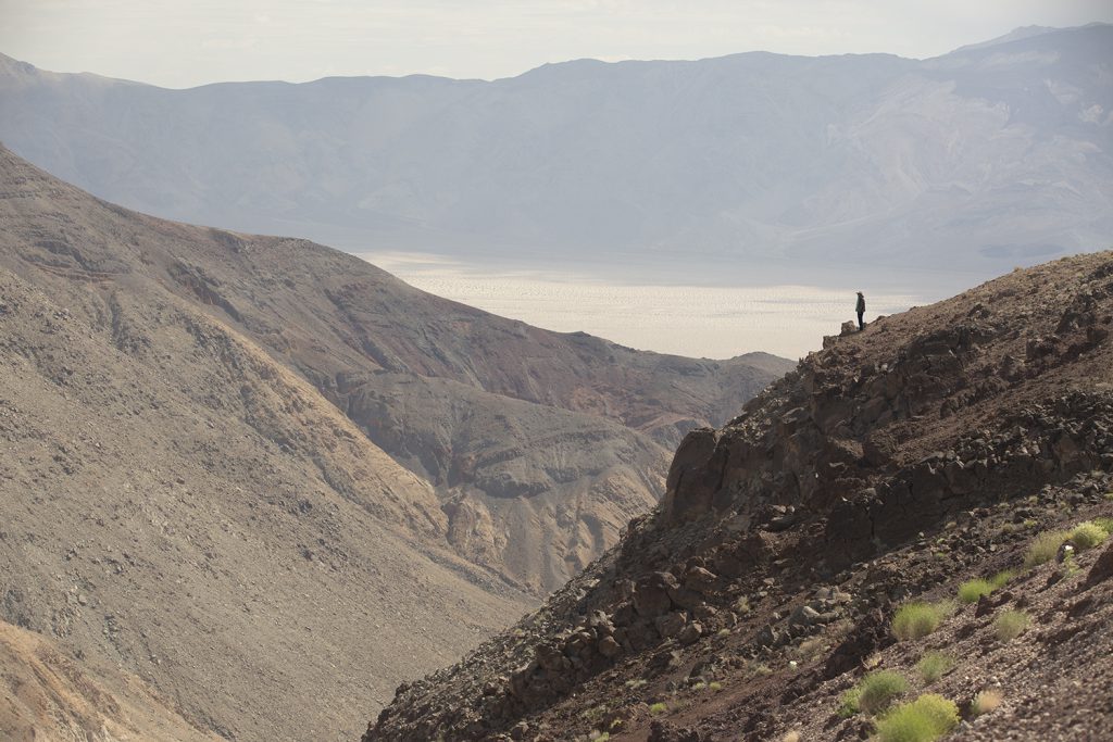 最終日はCA-190号線を西へ。前日のバッドウォーターが海抜マイナス86mであったのに対し、この日のハイライトのひとつであるタウン峠(Towne Pass)の標高は1512m(4963ft)。乾いた谷底から一気に山岳地帯へと登るダイナミックなルートです。峠を越えた先、ファーザー・クロウリー・オーバールック(Father Crowley Overlook)からは、岩肌が連なる渓谷を一望することができます。またこの地は米軍ジェット機が低空飛行訓練を行う“スターウォーズ・キャニオン”の名でも知られ、運がよければ頭上を駆け抜ける戦闘機を見ることもあります。