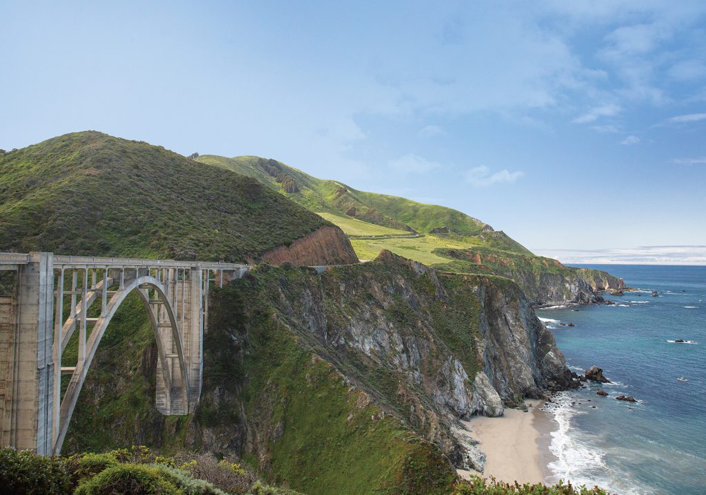 「生涯一度は旅をしたい道(a road trip you should do at least once in your lifetime)」と称され、この道が長く愛されてきた理由は、単なる景色の良さだけではありません。断崖に沿ってリズムよく続くワインディングロードを走り、1930年代に完成したアーチ橋のビクスビー・クリーク・ブリッジ(Bixby Creek Bridge)でこの地の歴史に触れ、車窓から眺めるカリフォルニアのサンセットの美しさに心を奪われ、海岸線に点在する小さな町では、ゆっくりと流れる時間を過ごす。その合間には州立公園やトレイルを訪れ、この地ならではの豊かな自然を体感することもできます。Highway 1(California State Route 1)は、1マイルごとに刻まれるすべての記憶が、ロードトリップとは何かを教えてくれる道なのです。