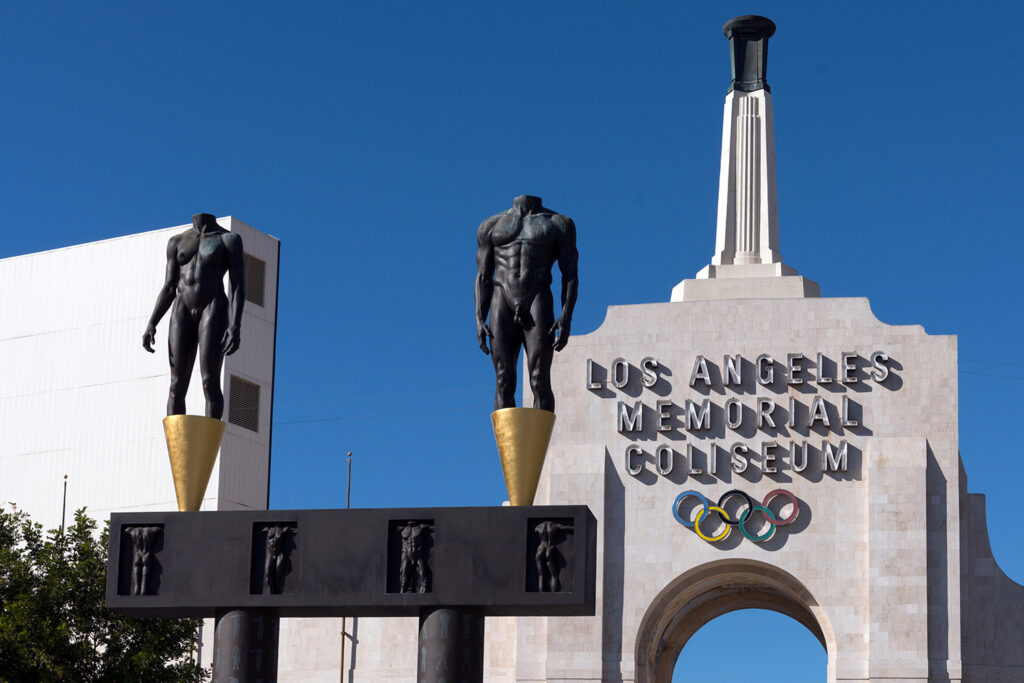 スタジアムの正面入口には、彫刻家ロバート・グラハムが1984年大会のために制作したブロンズ像「Olympic Gateway」が立っています。男女2体のアスリート像は、同大会に出場したテリー・シュローダー(水球)とジャッキー・ジョイナー=カーシー(陸上)がモデルとなり、スポーツの躍動と人間の美を象徴しています。