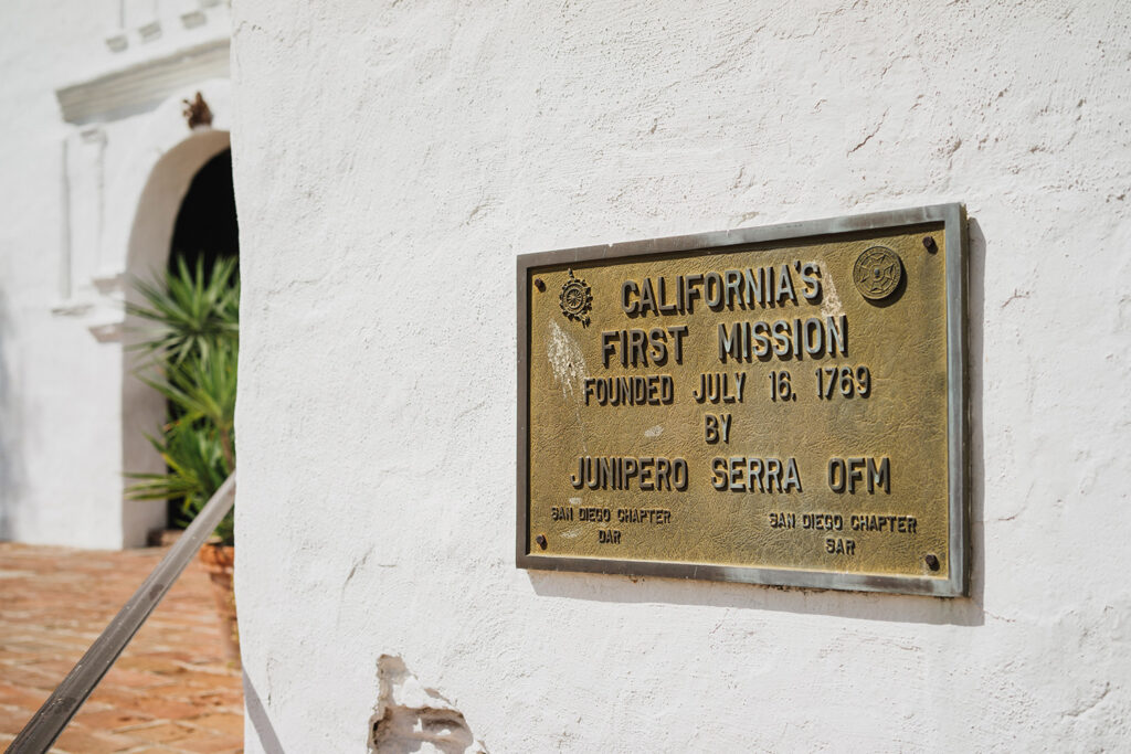 このミッションは1769年に創建されたカリフォルニアで最初に設立されたカリフォルニア・ミッション(フランシスコ会の伝道所)として知られています。スペイン統治時代、布教と領土拡大を目的に北上していったミッション網の出発点がこの場所でした。サンディエゴという都市名も、守護聖人であるディダコス・オブ・アルカラ(通称サンディエゴ)に由来しています。ミッションの建物は1774年に現在の場所に移転し、その後も破壊や再建を繰り返し、現在の建物は1813年に建てられた教会を模して1931年に完成した5代目の教会です。このミッションは、その歴史的背景も含め、アメリカ国家歴史登録財及びアメリカ国定歴史建造物に登録されています。