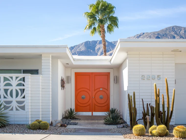 パーム・スプリングスにミッドセンチュリー建築が増えた背景には、ハリウッド文化の存在があります。当時、ハリウッドの俳優たちは撮影の呼び出しに備え、ロサンゼルスから2時間以内で戻れる場所にいなければならないという「2時間ルール」と呼ばれる慣習がありました。そのため、車で約2時間の距離にあり、冬でも温暖で晴天の多いパーム・スプリングスは、映画スターたちにとって週末を過ごすリゾート地として理想的な場所となったといわれています。アルバート・フレイやドナルド・ウェクスラーといった建築家たちによって気候条件に合わせた建築様式が進化し、さらにハリウッドスターたちがこの地に別荘などを建てるようになると、デザインや設計はより洗練され、独自のスタイルが生まれていきました。