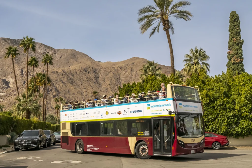 モダニズム・ウィークは、毎年2月に延べ11日間にわたって町をあげて行われるビッグイベントです。数百に及ぶプログラムのなかには、歴史的なミッドセンチュリー・モダン建築を訪れ、普段は見ることのできないインテリアや中庭を見学できるツアーも含まれています。また、二階建てバスやレンタサイクルによるミッドセンチュリー建築巡り、当時の建築やデザインをテーマにしたパネルディスカッション、ミュージックイベントなども人気のコンテンツとなっています。