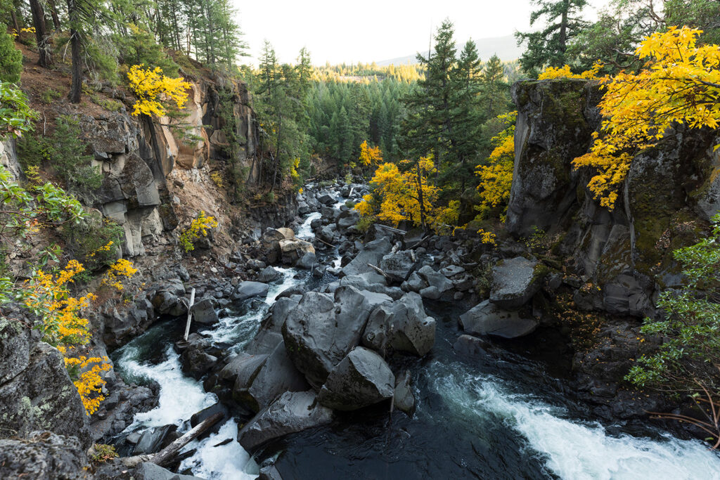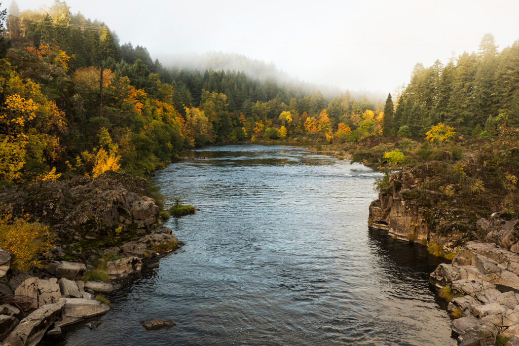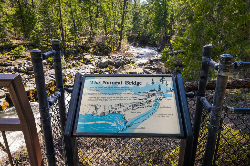 この先、バイウェイはローグ川沿いをさらに南下。サーモンやスティールヘッドが遡上するローグ川渓谷(Rogue River Gorge)や、地下を流れる川が地表に再び現れるナチュラル・ブリッジ(Natural Bridge)など、火山活動が生んだ独特の地形を間近に見ることができます。プロスペクト(Prospect)周辺には、釣りや野花観察を楽しめるキャンプ場が多く、さらに下流のロストクリーク湖(Lost Creek Lake)は、ボートや水上スキーの人気スポットになっています。