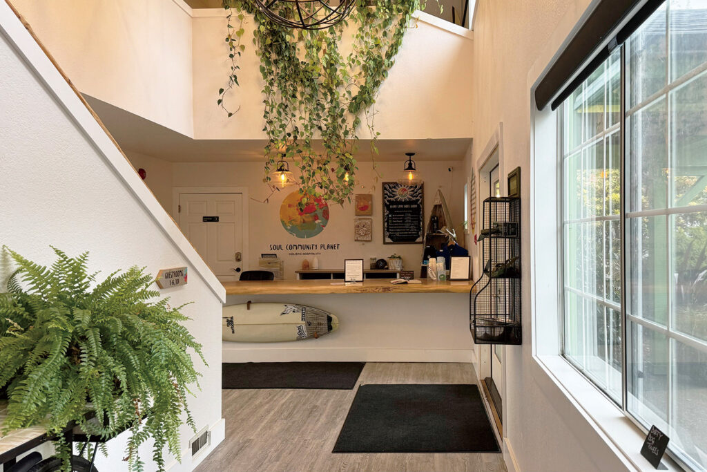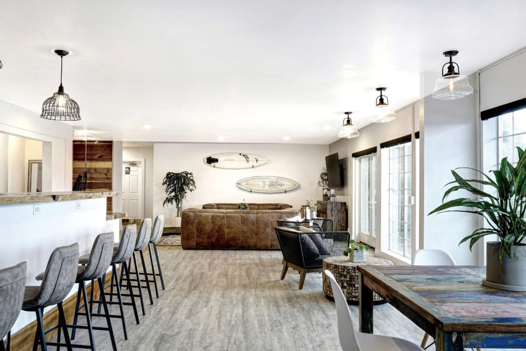 1階には、海を望むラウンジ兼コワーキングスペース「The Great Room」があり、宿泊者同士の交流や読書、リモートワークなど、思い思いの過ごし方が可能です。さらにその奥には、瞑想やストレッチ、ヨガ、フィットネスができるトレーニングスタジオも完備。朝には、地元産の素材を使った軽朝食が無料で提供され、滞在を通じて健康的なライフスタイルを体感できます。無料ランドリーもあり、長期滞在やロードトリップの途中にも便利です。