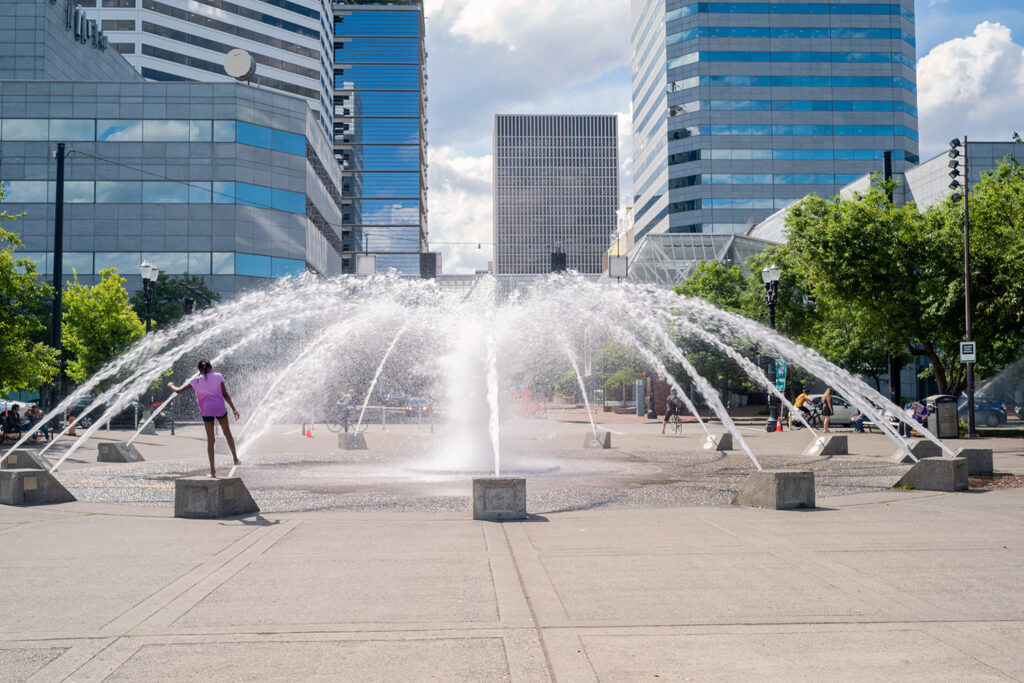 園内にはいくつかの見どころがあります。夏の子どもたちの遊び場として人気のサーモン・ストリート・スプリングス(Salmon Street Springs)は、1988年に完成したインタラクティブな噴水です。地下に設置されたコンピューターによって185本の噴流が制御され、3種類のパターンで水が踊るように吹き上がります。 また、川沿いにはアメリカで最後に稼働した蒸気動力の船尾外輪タグボートが保存されているオレゴン海洋博物館(Oregon Maritime Museum)があります。館内では船の操舵室や機関室を見学することができ、かつての川の交通の歴史を学べます。さらに、観光案内所として利用されているローズ・ビル(Rose Building)も立ち寄りたいスポットです。1948年にポートランドの著名な建築家ジョン・イェン(John Yeon)が設計したこの建物は、北西部モダニズム建築の代表作として知られています。