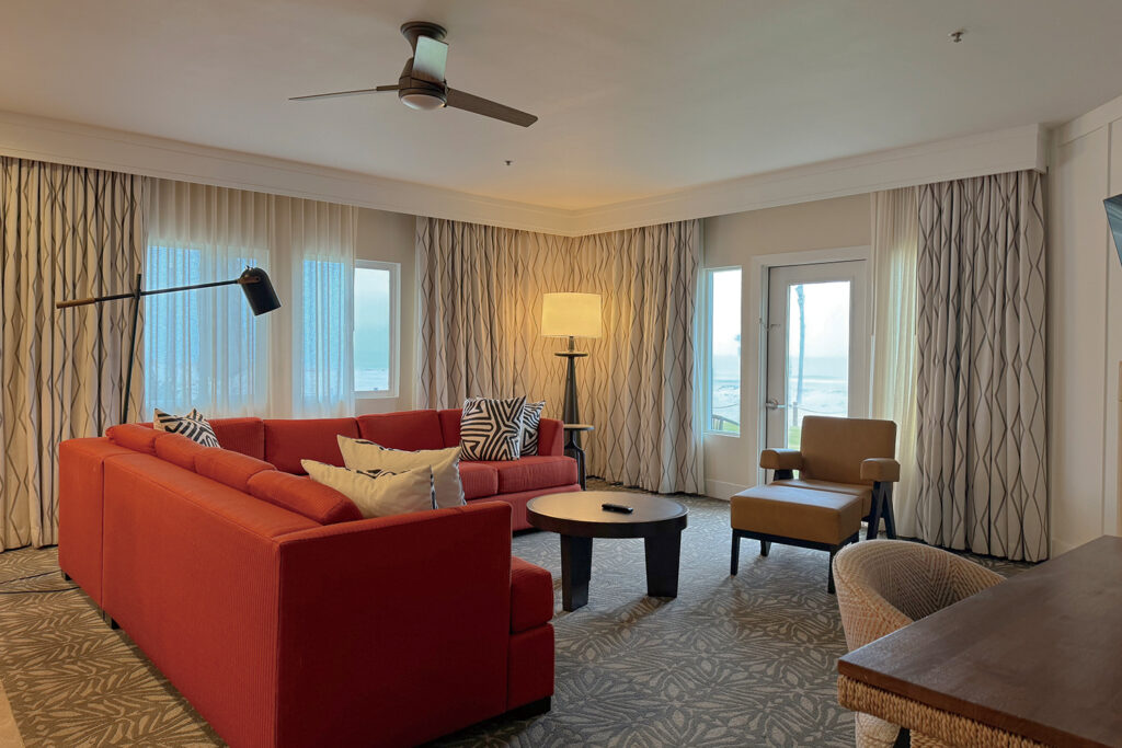館内に入ると、高い天井と柔らかな色調で統一されたロビーが広がり、ビーチリゾートらしい明るさとほどよい開放感を感じられます。客室は全てスイートタイプで、リビングルームとベッドルームが分かれたゆとりあるレイアウト。部屋によってはバルコニーが付き、太平洋の風や、夕暮れに移ろう空の色を眺めながらくつろぐことができます。